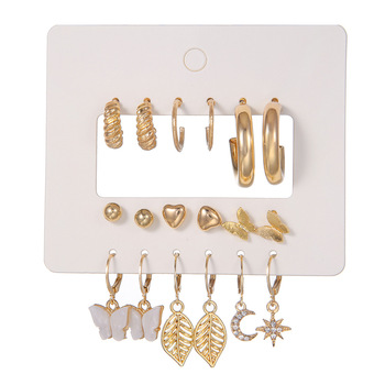 Go Party 9 par/set de pendientes de aro de cristal de aleación acrílica para mujer Twisted Moon Star Heart Butterfly Studs Pendientes Kit
