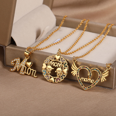 ゴーパーティーファッションアルファベットレターMAMAMOMネックレス銅クリスタルホローハートエンジェルウィングネックレス女性母の日ギフト