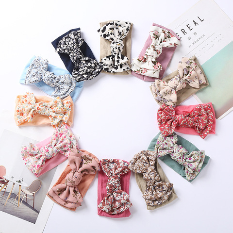 ゴーパーティー卸売ベビーチャイルドヘアウェアキッズプリントシフォンボウヘアバンドヘアアクセサリー高弾性ナイロンノットヘッドバンド