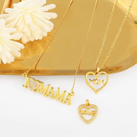 Go Party สร้อยคอชุบทอง18K,สร้อยคอจี้เพทายหัวใจแบบเต็มรูปแบบสร้อยคอ I Love MAMA ของขวัญวันแม่ร้อนแรง