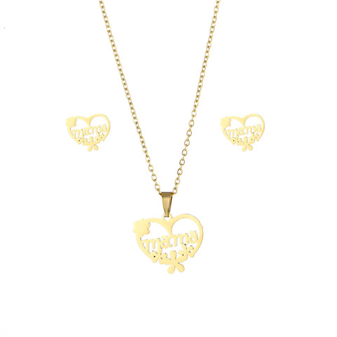 Go Party ชุดเครื่องประดับสแตนเลส,ชุดสร้อยคอพร้อมจี้รูปหัวใจดอกไม้กลวงต่างหูจี้สร้อยคอหัวใจ MAMA
