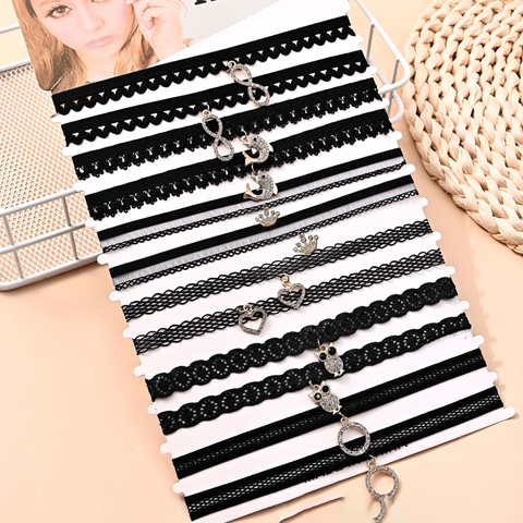 Go Party Punk Style สร้อยคอโกธิค,สีดำลูกไม้หัวใจดาวผีเสื้อเรขาคณิตคอเพชรไหปลาร้าสร้อยคอผู้หญิง