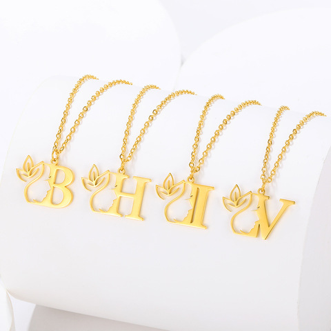 Go Party Dainty สร้อยคอสแตนเลสรูปใบหน้ากลวงสร้อยคอเริ่มต้นดอกไม้สำหรับผู้หญิงผู้หญิง A-Z สร้อยคอจี้ตัวอักษร26ตัว